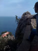 Ecco la casa al mare di Curzio Malaparte. A Capri. Pasqua 2011. L'uomo che la indica è troppo grasso per scavalcare le muraglie e i fili spinati e farsi invitare a bere il tè.